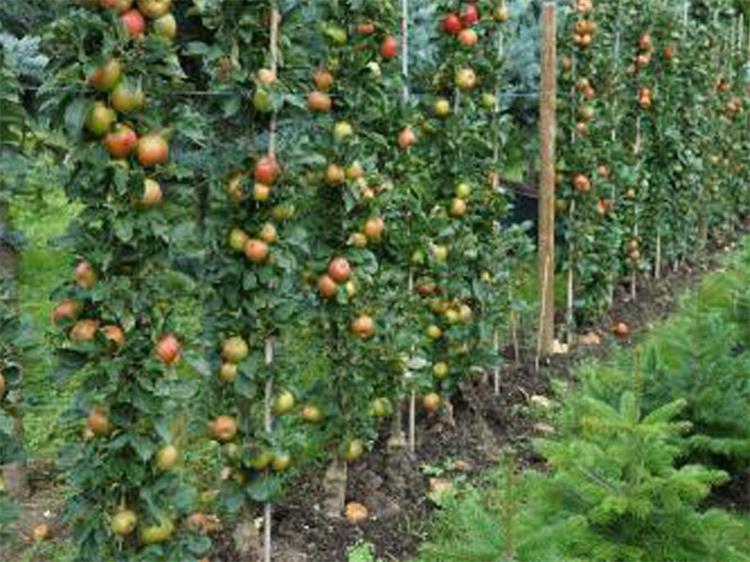 Speziell gezüchtete Apfelbäume werden im Abstand von nur 40cm z.B. an der Grundstücksgrenze statt Liguster, Hainbuche oder Thuje gepflanzt.